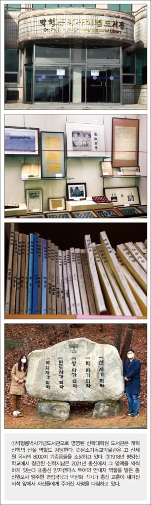 평상시 같으면 학생들의 학구열로 불타올랐을 열람실과 미국 갈보리신학교에서 기증한 8만여 권의 장서를 비롯한 온갖 서적과 문서들로 가득한 자료실까지 둘러보았다. 방역지침 등으로 인해 텅텅 빈 풍경이 스산하다. 어서 이 자리들이 다시 사람들의 온기와 열정으로 채워지기를.
