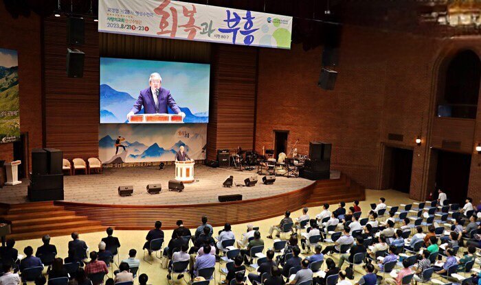 대표회장 김성원 목사(광주중흥교회)는 개회예배 설교에서 “여러 가지 지표를 통해 확인된 한국교회의 현재는 매우 실망스럽고 어려운 지경”이라고 진단했다. 그러나 “그럼에도 불구하고 교회는 희망”이라며 영성수련회를 통해 교회가 회복되고 갱신하는 계기가 되길 기대했다.