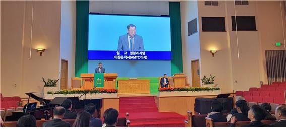 1부 예배에서는 AMTC 이사회 총무인 문상무 목사의 사회로, 미주 지역대표 김명자선교사의 기도, AMTC 9기 수료생들의 특송 ‘주님 다시 오실 때까지’를 부른 후 AMTC 이사인 이상돈 목사의 설교 ‘명령과 사명’이 있었다. 이 목사는 마 28:19-20 성경본문으로 “9년 전 열악한 환경 속에서 재건된 AMTC가 GMS의 세계 5000명 선교사 파송계획을 이루는 발판이 되었다”며 “정식 GMS선교사로서 주님의 명령과 사명을 이루자”고 했다. 또한 “사명에는 즐거움과 행복이 있다”며 세상 끝날까지 함께 하신다는 주님의 약속을 믿고 목숨 걸고 복음전파에 힘쓰자고 했다.