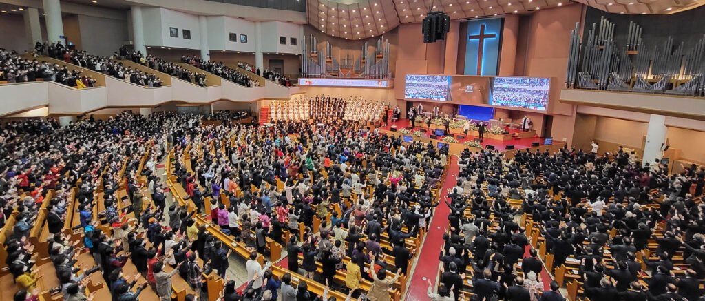 2022년 여의도 순복음교회에서 드려진 부활절연합예배 모습.