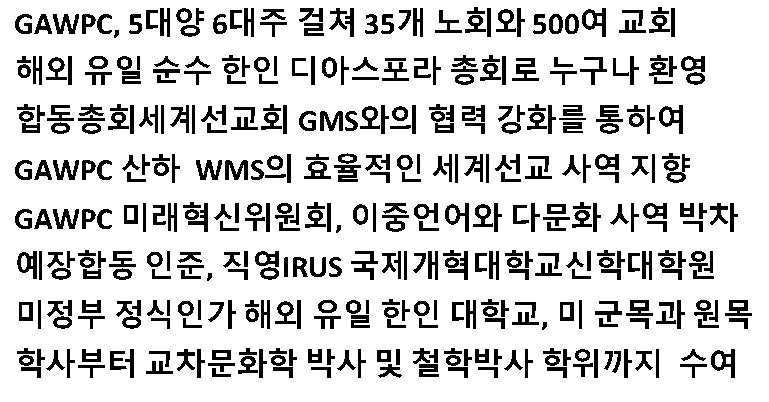 GAWPC 세계예수교장로회총회에 대해서는 홈페이지(www.gawpc.com)나 213-381-0082(미국 LA)로 문의하면 된다.