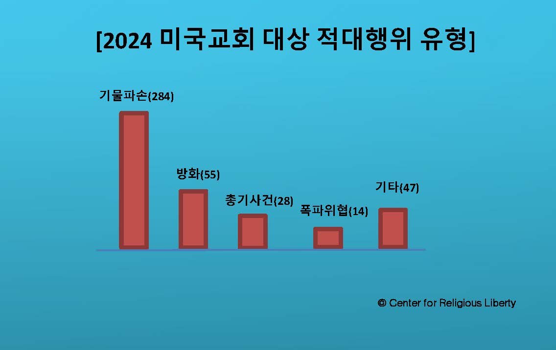 미국 가족연구위원회(Family Research Council, FRC)가 11일 발표한 “미국 교회를 대상으로 한 적대 행위” 제목의 보고서에 따르면, 2024년 한 해동안 미국 교회를 대상으로 한 적대 행위가 400건 이상이며, 총기 관련 사건도 급증한 것으로 나타났다.
