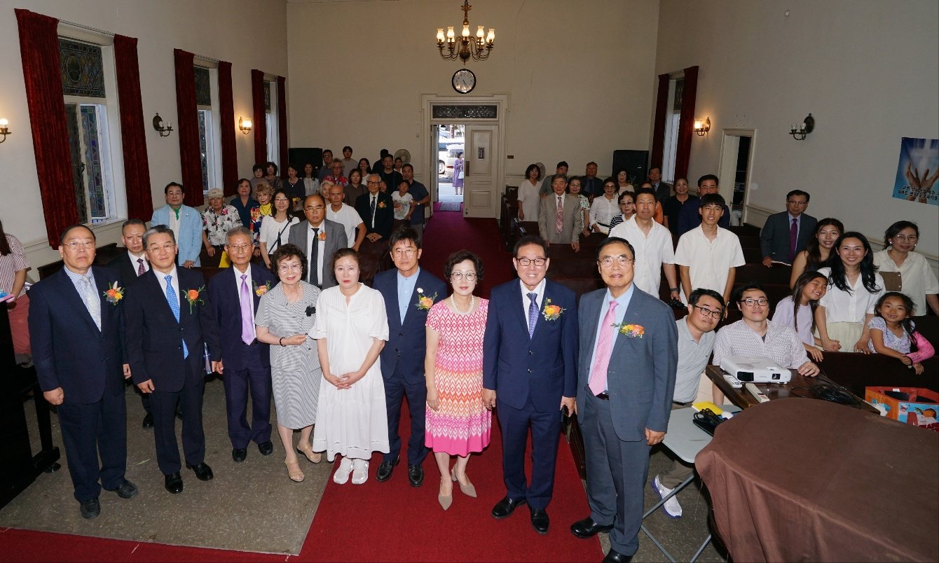 행사를 마치고 참석자들과 함께 기념촬영을 하고 있다(앞줄 오른쪽으로부터 네 번째)샘신 담임목사).