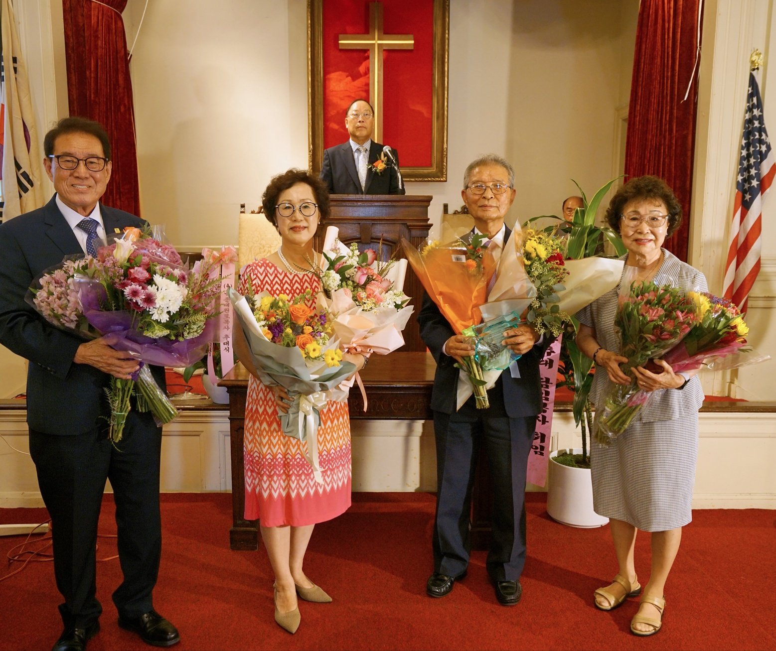 박종대 목사 원로목사 부부(왼쪽)와 박만서 원로장로 부부가 기념촬영을 하고 있다.