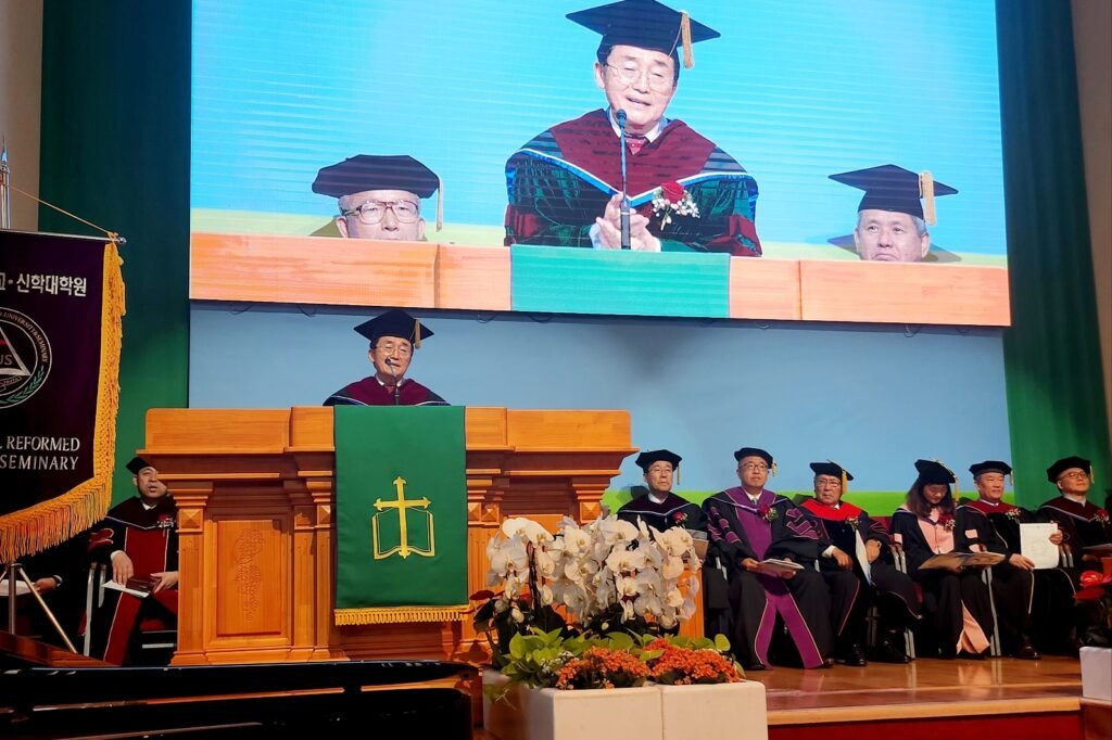 이날 김춘경 박사(이사회 서기) 사회로 시작된 학위 수여식은, 사회자의 개식선언(이사, 교수, 졸업생 입장), 기원, 개원 기도, 김요한 박사(이사장) 환영사, 다 함께 찬송가 10장 ‘전능 왕 오셔서’ 찬송, 김기섭 박사(이사) 대표기도, 안소연 박사(전 이사장) 성경봉독, 나성열린문교회 샬롬권사찬양대 찬양, 권순웅 박사(대한예수교장로회합동총회 총회장) 설교, 박기태 박사(교무처장) 학사보고, 총장 박헌성 박사 학위수여 및 훈시, 하요한 목사(세계예수교장로회총회 WPC 총무) 졸업생들을 위한 기도 등의 순서로 진행됐다.